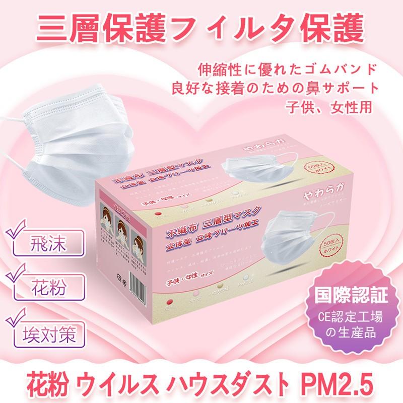 マスク50枚入荷箱日本国内発送 在庫有り不織布男女兼用小さめ子供女性
