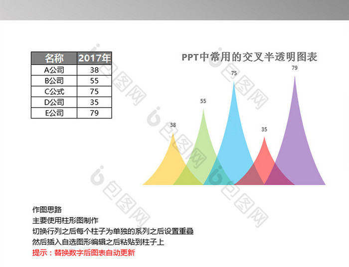 自动图表交叉半透明图表 Excel模板下载 包图网